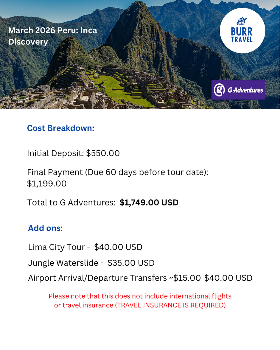Join this incredible 8-day adventure as you explore Lima, Cusco, and one of the 7 wonders of the world, Machu Picchu!